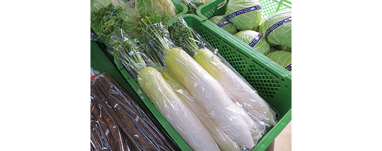 大規模化してしまうと目が届かない。うちは販売の主力が直売だから「量より質」でやっているね。以前は白菜とスイカを柱にやっていたけど、今は何が柱ということはなくて、年間通じて直売所に出荷できるように色々な種類の作物を栽培しているよ。