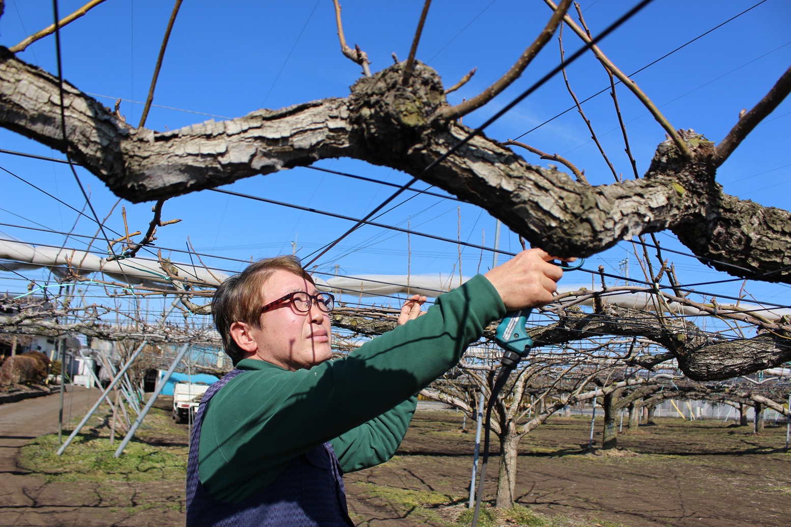 島田さん、ありがとうございました。写真撮影では、広々とした見事な梨園を見せていただきました。取材時は冬でしたが、それでも力強く枝を広げる梨の平棚は圧巻の一言です。「農業簿記」についても、大切な相棒です、と言っていただきました。