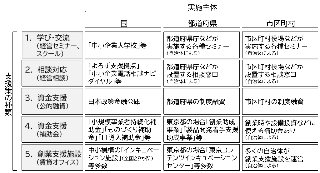 支援策の情報をインターネットで探すとあちこちに散見されますが、実施主体は、大まかに言えば以下の3つです。