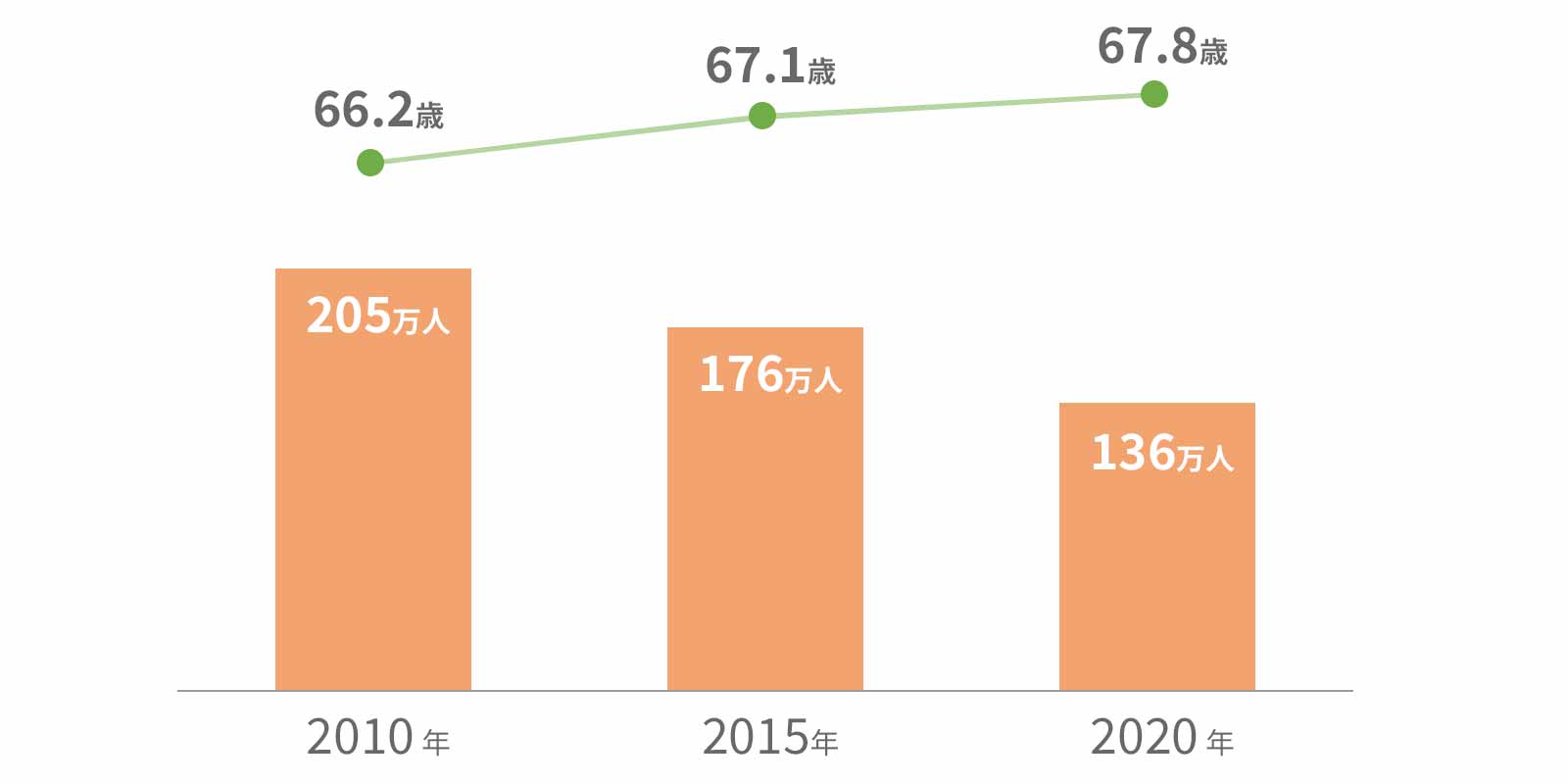今後20年間で、現在の基幹的農業従事者の大宗を占める70歳以上の年齢層がリタイアした後、農業者数は現在から大きく減少することが見込まれる。従来の生産方式等を前提とした農業生産では農業の持続性を確保できない懸念が生じている。
