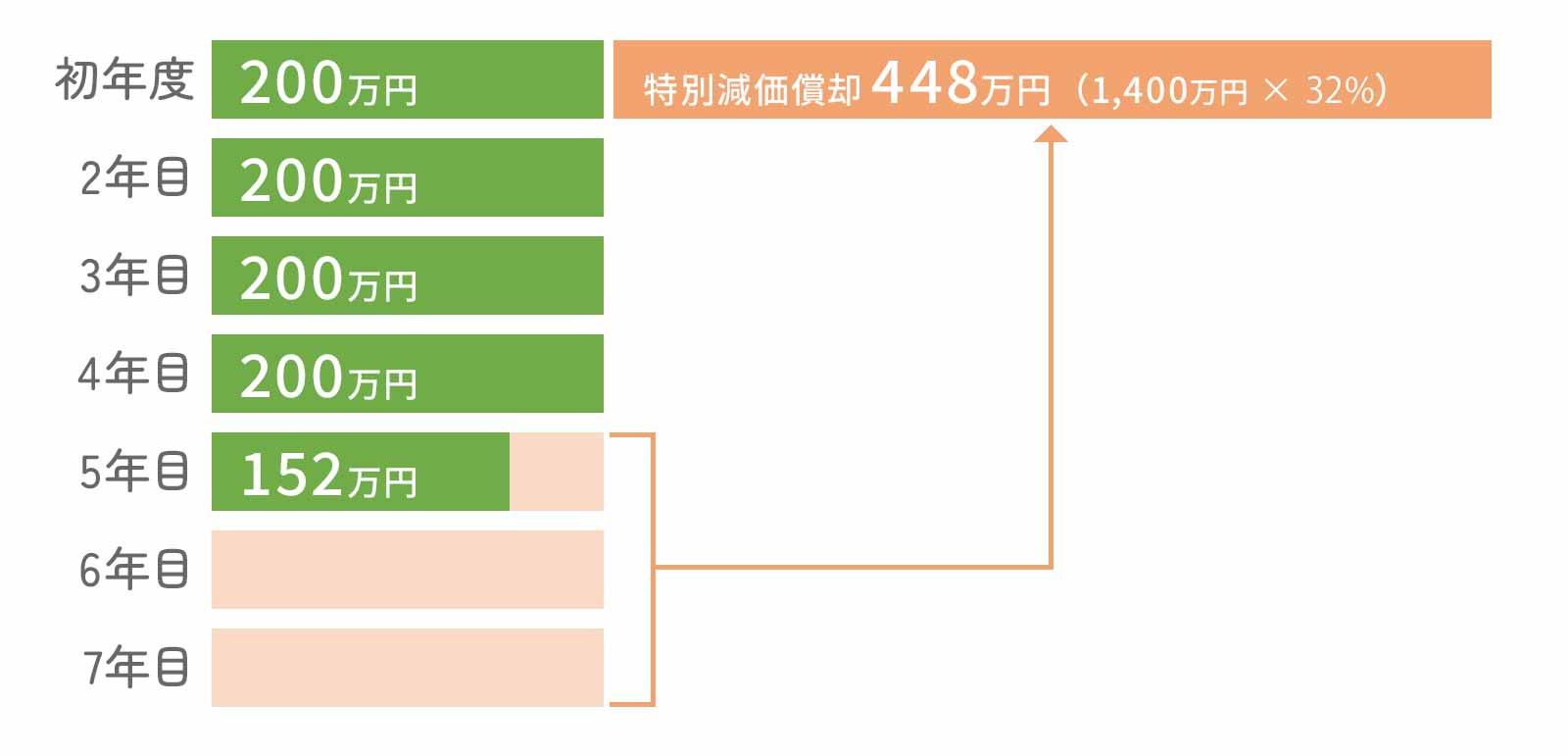 1,400万円、耐用年数7年のスマート農業機械を導入した場合