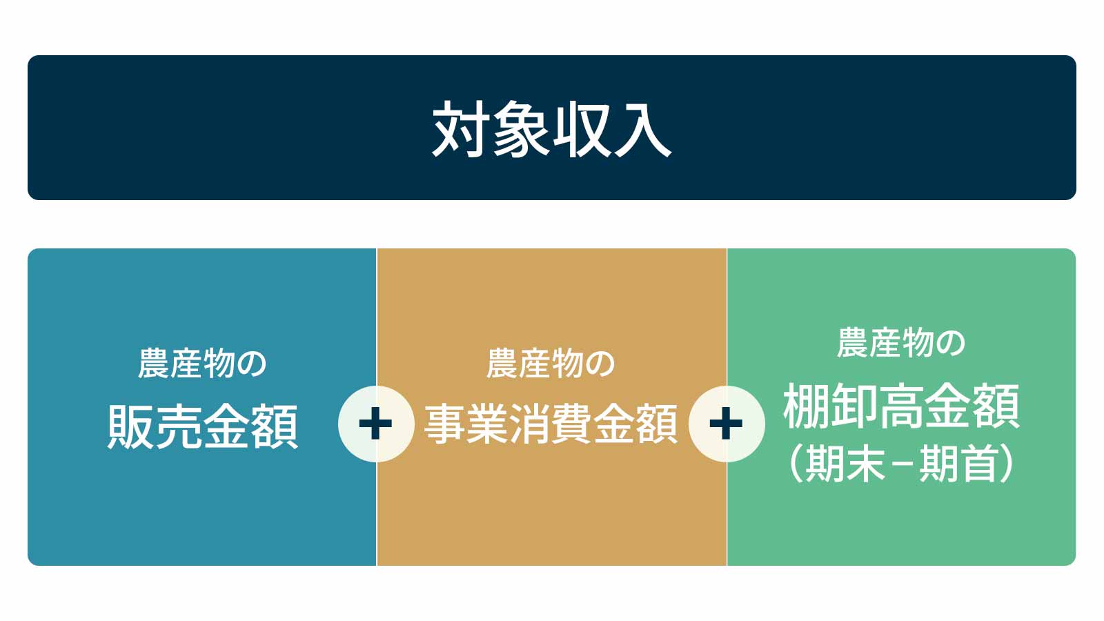 例えば①農産物の精算金②畑作物の直接支払交付金、甘味資源作物交付金、でん粉原料いも交付金及び加工原料乳生産者補給金の数量払③家畜伝染病予防法に基づく手当金、植物防疫法に基づく補償金④JTの葉たばこ災害援助金は、農産物の販売金額に含める。
