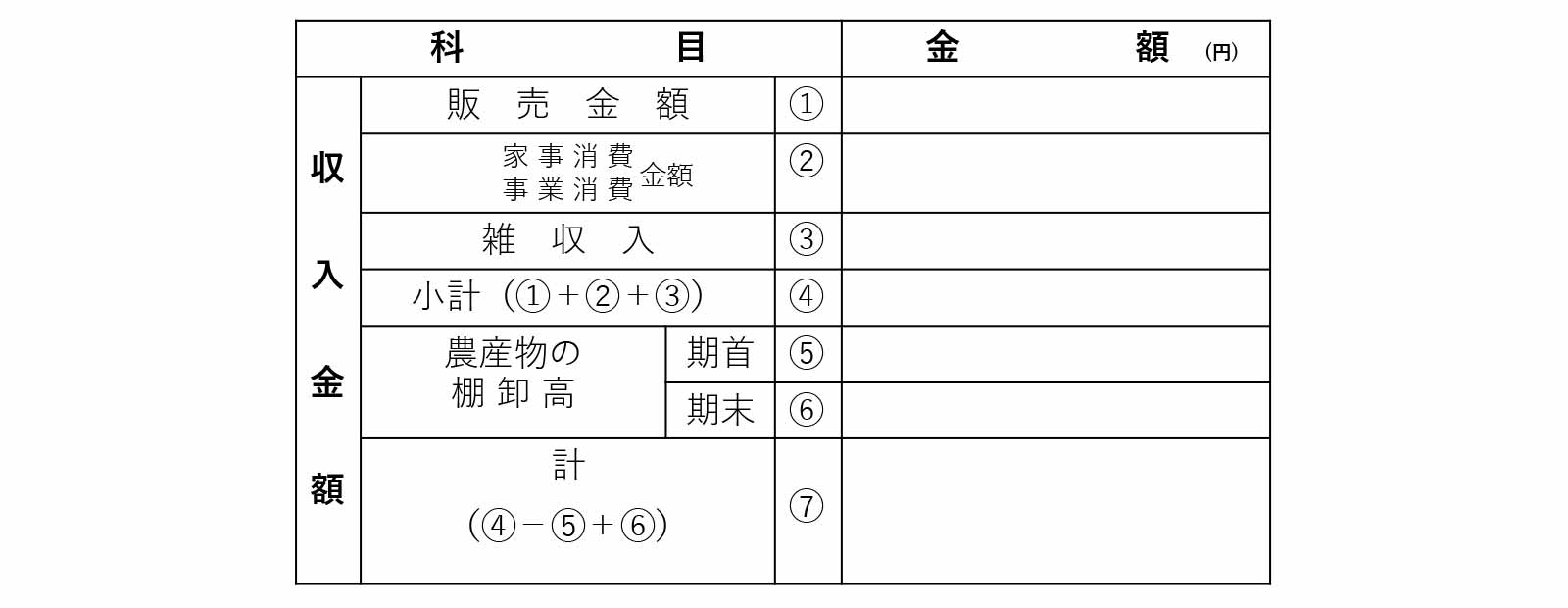 確定申告をする場合、原則として全ての収入を申告する必要がある。農産物の販売金額だけでなく、収益の補償として受け取る補助金、水稲・野菜・果樹共済の受取共済金、わら・もみ・家畜排せつ物など副産物の販売収入、農作業を請け負った場合の受託作業料なども雑収入として収入金額欄に記載する。