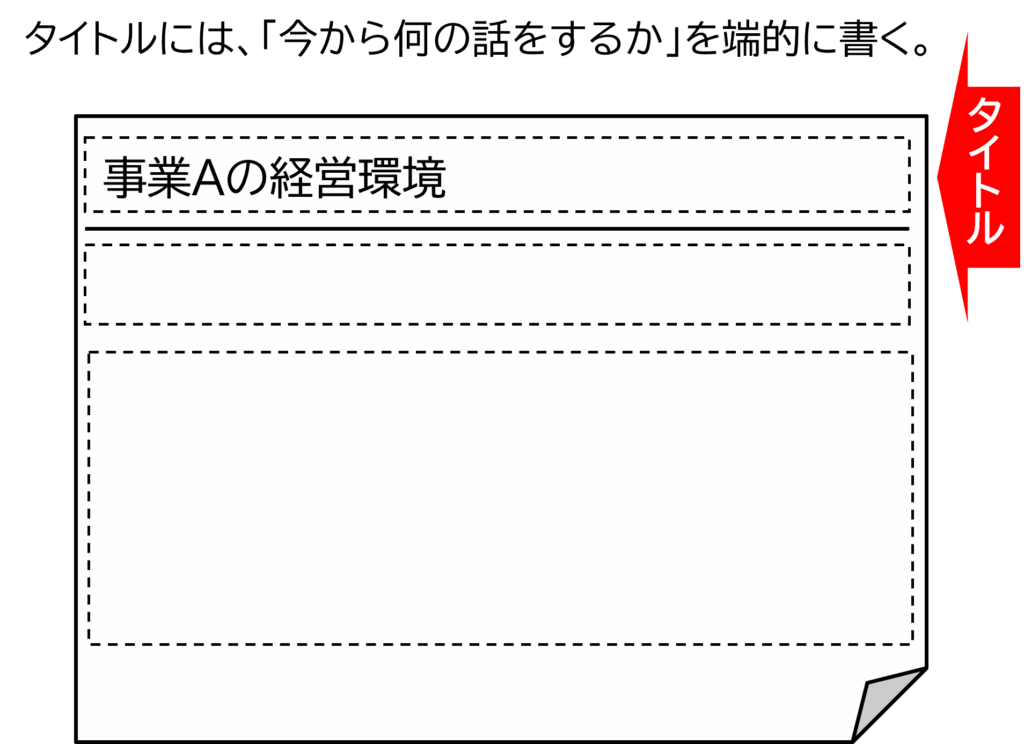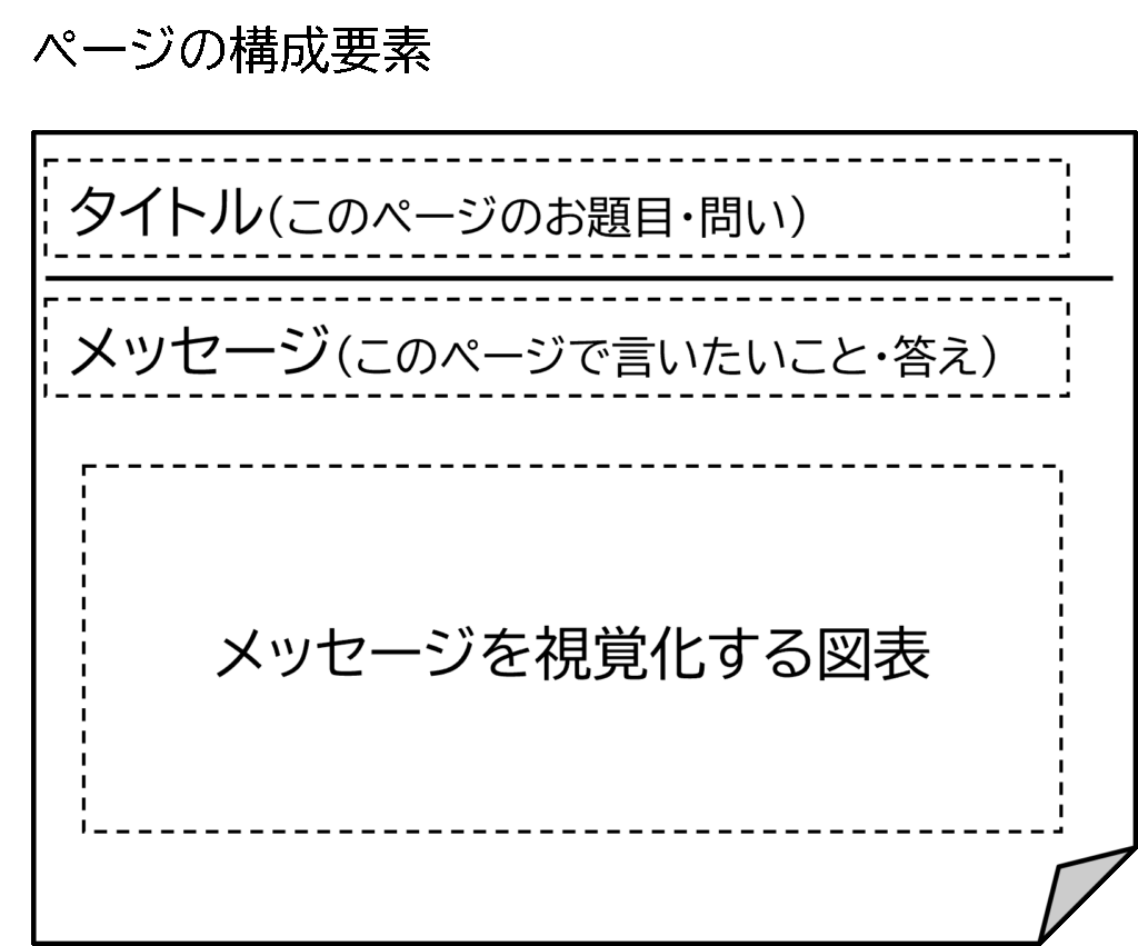 プレゼン資料の各ページの基本的な構成要素は、以下3つです。