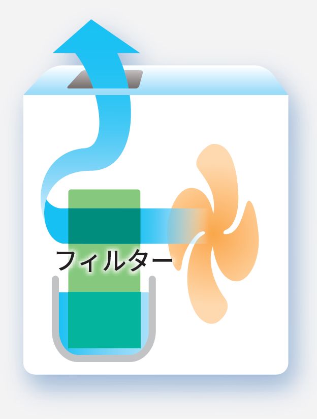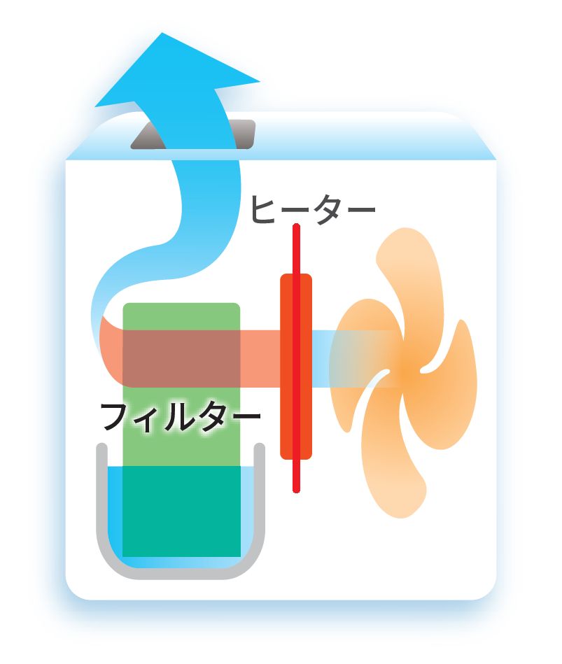 水を(気化)フィルターに吸わせてファンで送風して加湿する