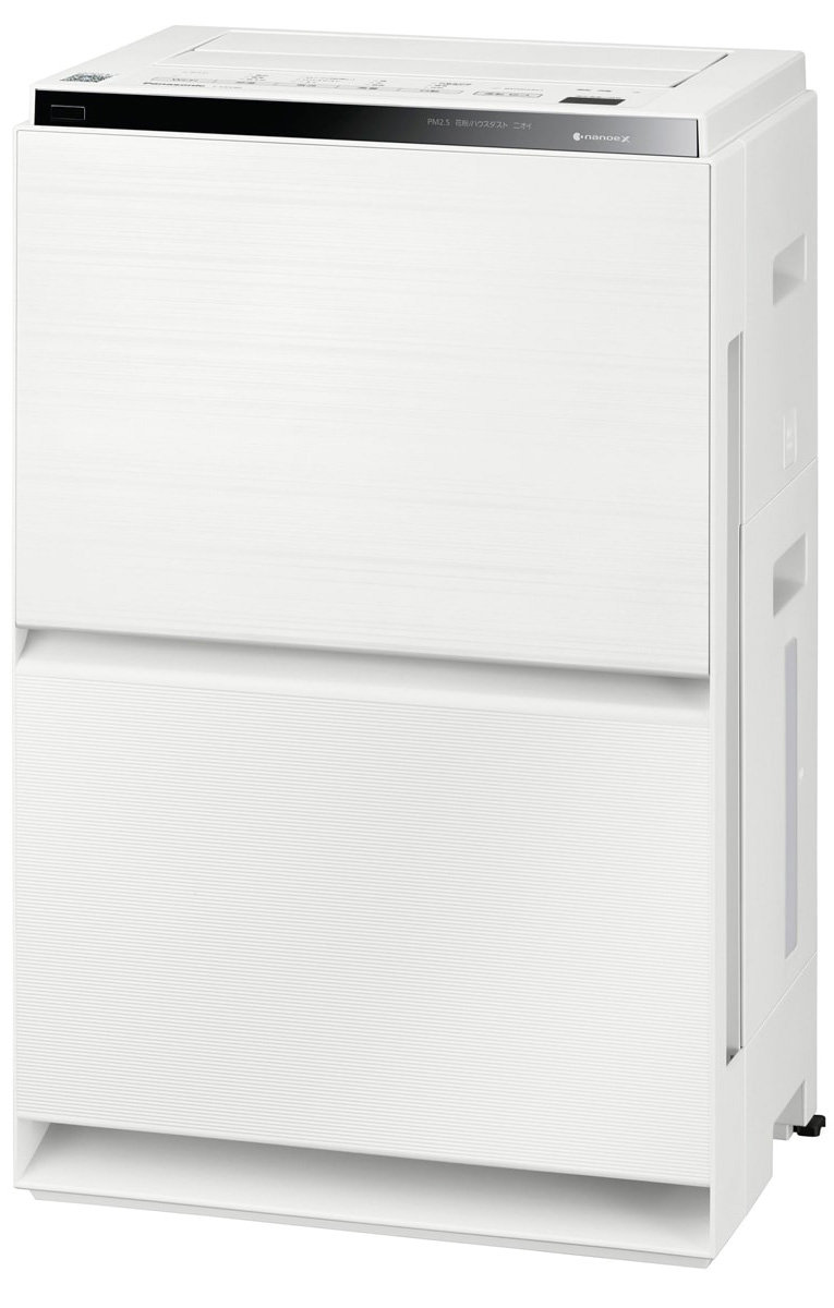 2022年11月上旬発売の加湿空気清浄機です。ナノイーX搭載でにおいやカビ、浮遊菌なども抑制しオフィスの空質向上ができます。インテリアに溶け込む2種類のデザインが選べるのが特徴です。タンク容量は4.0Lと小さめなので、就業時間中に給水が必要になります。ただナノイーX搭載なので内部にカビが発生しづらく気化フィルターから受け皿までカビにくい構造になっています。