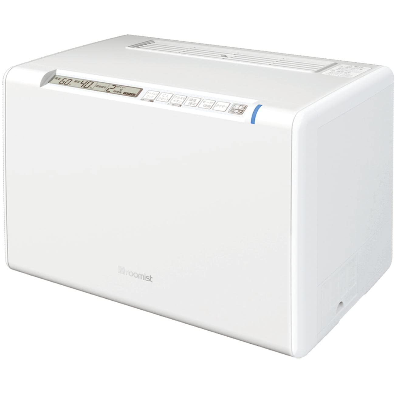 頻繁に換気が必要な実験室や工作室などで、急速に加湿したい場合にはスチーム式加湿器がオススメです。基本はスチーム式ですが発生した蒸気をファンで冷やし55℃以下の蒸気にしてから放出するのでやけどの心配がありません。またタンク全体の水を沸騰させるのではなく、必要なぶんの水のみ沸騰させるのでスイッチONですぐに加湿できるのも特徴です。湿度の設定は40~65%の5%刻みで細かく設定が可能。タンクを満水にすればほぼ8時間の連続運転ができます。さらにスチーム式なので、週に1回蒸発布を軽く水洗いする必要がありますが、あとはほぼメンテナンスフリーです。「三菱サーマルシステムズ」はあまり耳にしない会社ですが、家電量販店やネット通販での購入が可能です。
