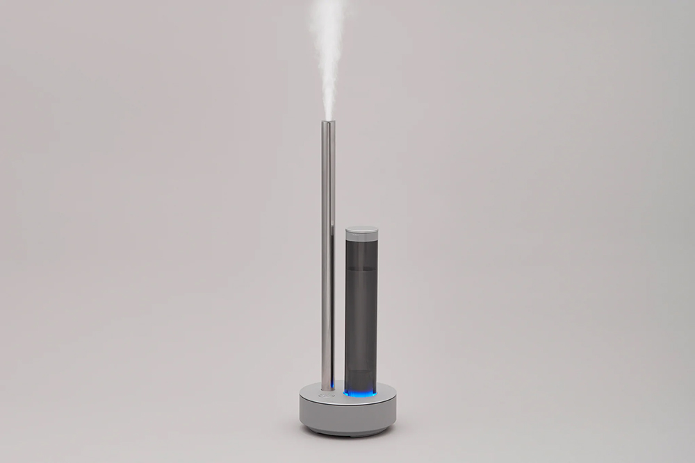 超音波式の加湿器は大きな部屋に向いていないので選択の余地が少ないのですが、cadoの煙突型の加湿器はデザイン性にも性能的にも優れています。加湿性能はこれまで紹介したものと比べると低いので、受付や会議室などに向いているでしょう。一般的な超音波式の加湿器は装置のまわりの床が濡れてしまいがちですが、この製品は長い煙突をミストが抜ける際に、大きな粒を煙突内で分別し、煙突からは小さなミストしか出ないので、水分がすべて空気中に溶け込み床が濡れません。デザインを重視したい場所にオススメの加湿器です。