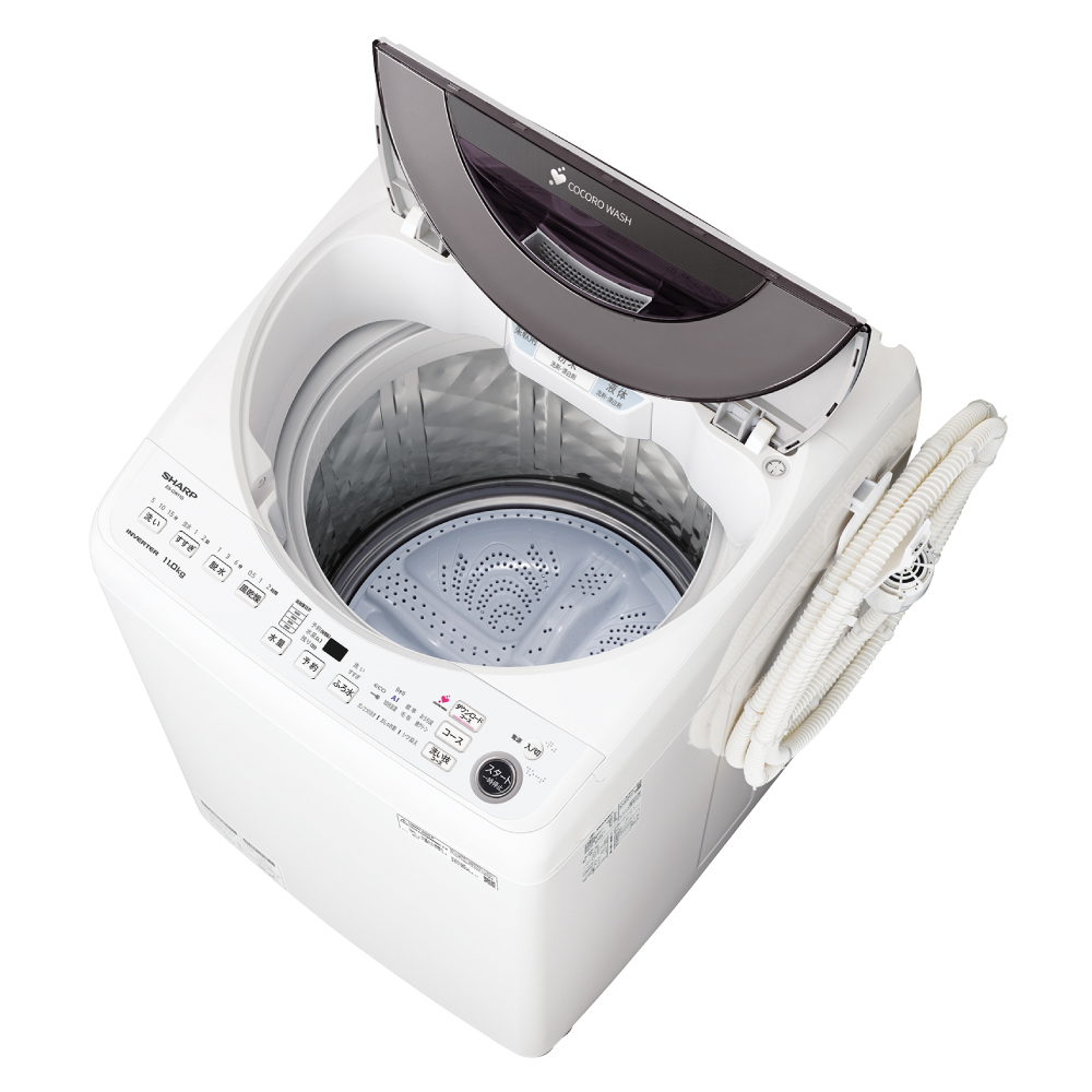 一般的な縦型洗濯機は、洗濯槽の横に脱水用の穴が空いています。そのため洗濯槽の外側の見えない部分にもう1槽を持って入るため、洗濯槽と外側の槽の隙間にも注水します。しかしシャープの縦型洗濯機は洗濯槽に穴がなく、シャープ独自の方法で穴なし槽でもシッカリ脱水が可能です。