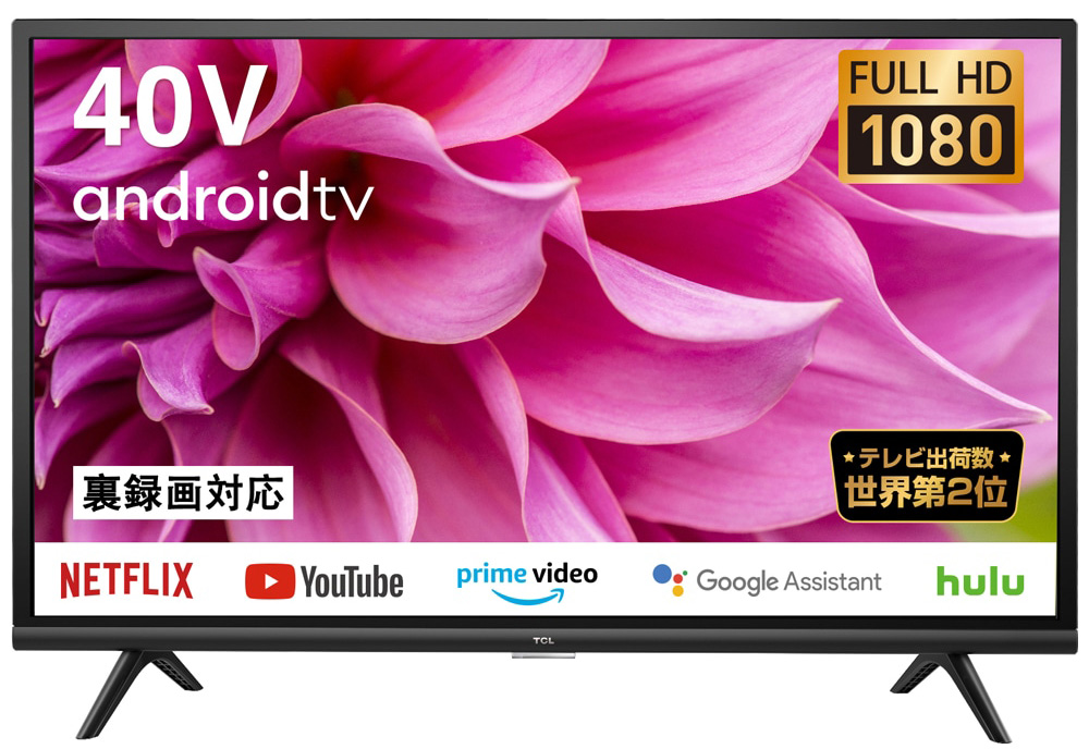 TCL(中国製)の2K液晶テレビ(40S5200B)。Youtube他ネットワークコンテンツ対応。PCのサブモニタとしても利用可能。市場価格は4万4000円程度