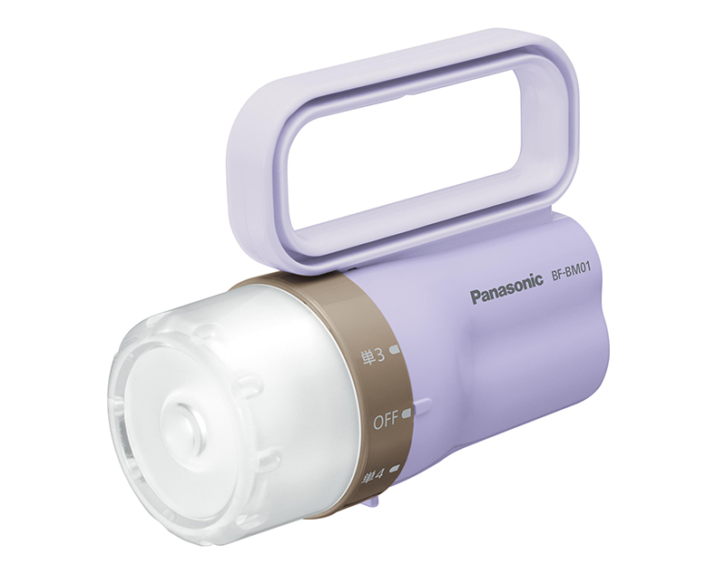 パナソニックの「電池がどっちかライト」。大きさは小さい缶コーヒー程度。カラーバリエーションもラベンダー以外にピンクやチョコレートブラウン、白などがある