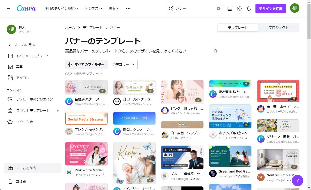 大量のテンプレートから作りたいイメージに近いバナーを選びます。