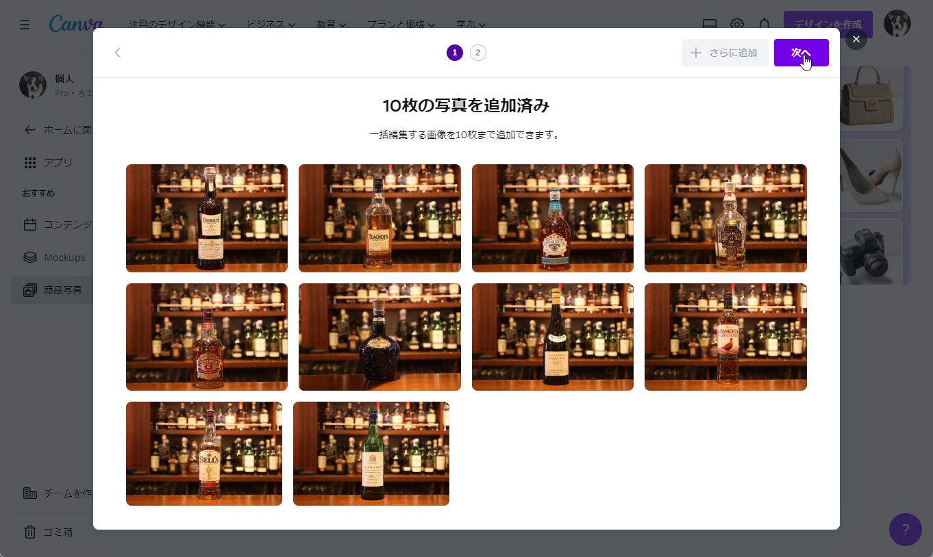 背景を選択すると、自動的に商品を切り抜き、合成してくれます。