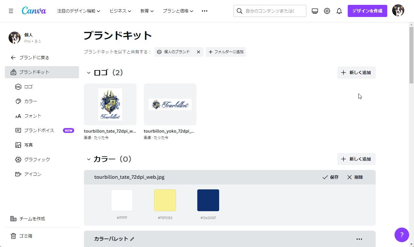 有料プランでは「ブランドキット」という機能も利用できます。事前に設定したフォントやロゴ、カラーなどに従ってデザインを作ることができるので、ブランドの一貫性を維持できます。