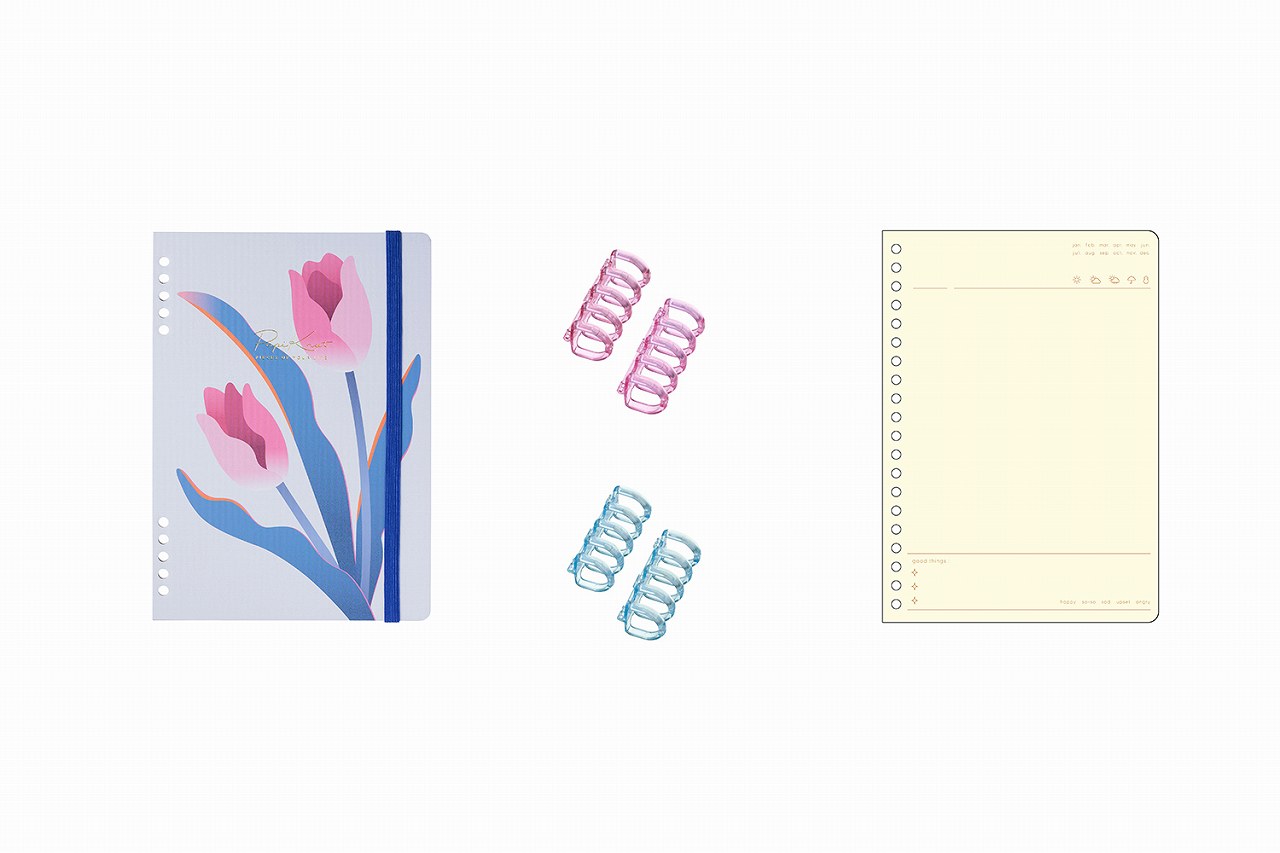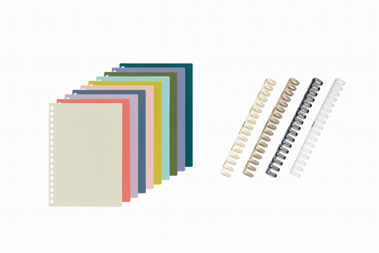 「パピノット」のリングは1つに2個入っていて上下に取り付けられます。簡単に開閉ができるので取り外しも簡単。カラーリングはラムネ、シナモン、ミント、ベリー、トマト、レモンの全6色展開。表紙とリングの組み合わせは60通りもあります。普段のメモやライフログだけでなく、写真を貼ったりスクラップにもぴったりな「色紙リフィル」など他のアイテムの種類も豊富なので、アイデア次第で使い方で自分らしい1冊が作れます。