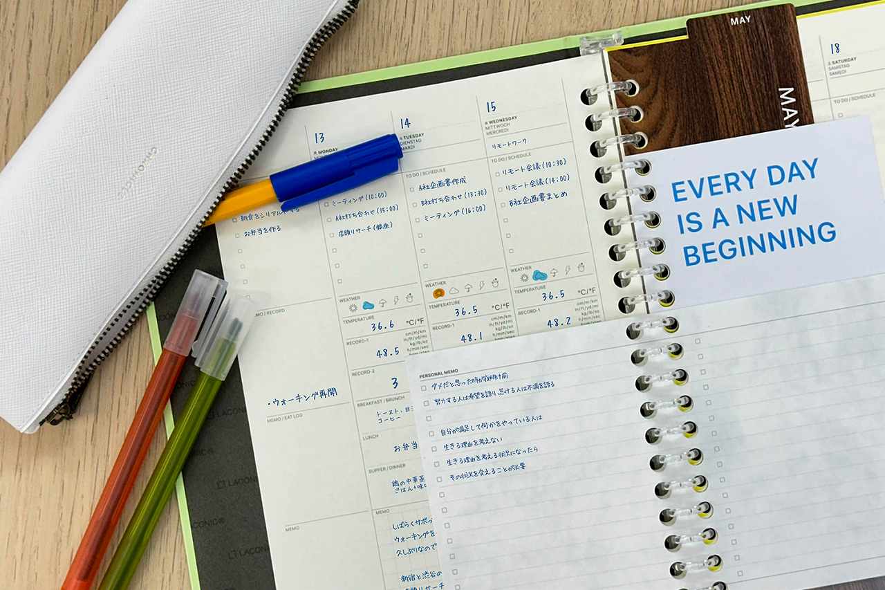文房具売り場で新しいノートを探す時「表紙のカラーやデザインもこだわりつつ、中の罫線も好きなものを選びたい。」そんな声も多く、今回ご紹介したような表紙やリング、リフィルを自分好みに組み合わせて使えるものが増えてきました。メモだけでなく手帳感覚で使えるものも多いので、ぜひライフログやスケジュール管理にもカスタムノートで自分だけのノートを作ってみてはいかがでしょうか?