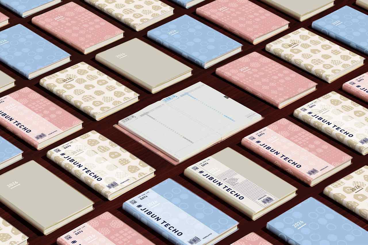 2026年は日本の四季や風情をポップに表現したテキスタイルデザインを製作する京都のブランド「SOU・ SOU」とのコラボレーションの表紙デザインが魅力。限定シールが付属されているので、表紙のデコレーションやライフログのアレンジにも使えます。サイズはA5スリムの「ジブン⼿帳DAYs 2026」とB6スリムの「ジブン⼿帳DAYs mini 2026」の2種類あります。