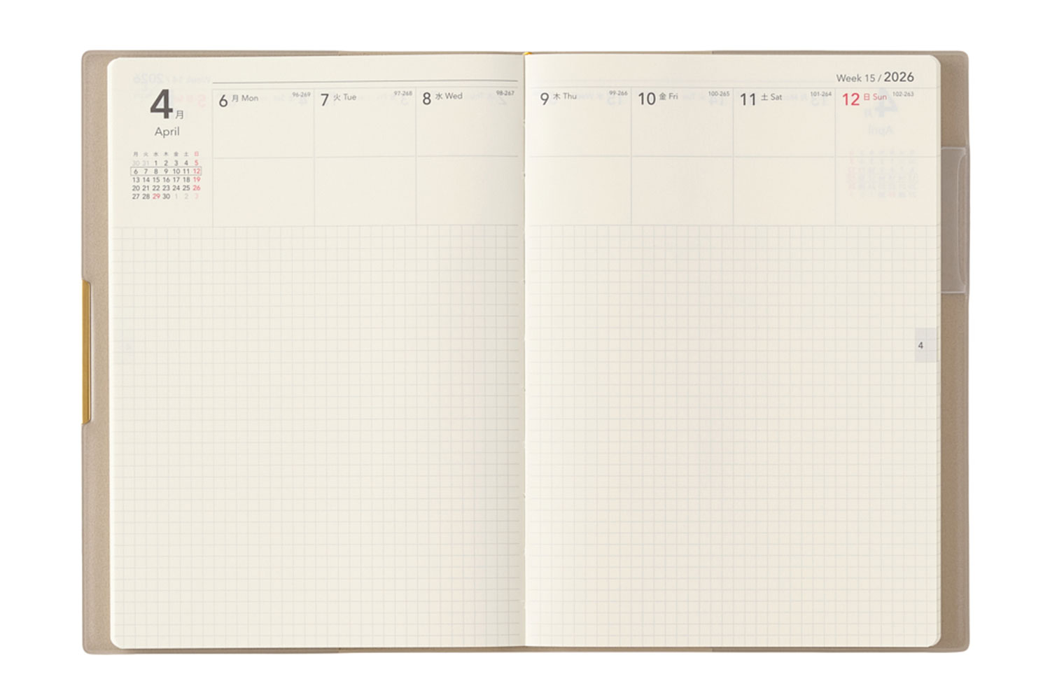 1年を大切に過ごせるよう、手帳の巻頭にはマンスリープラン、巻末にはヘルスチェックやメモなどのフォーマットも充実。メモページもあるので、ライフログにもおすすめです。2026年は表紙にアイボリー、アイスブルー、ベージュの3色が追加されカラーバリエーションが豊富になりました。