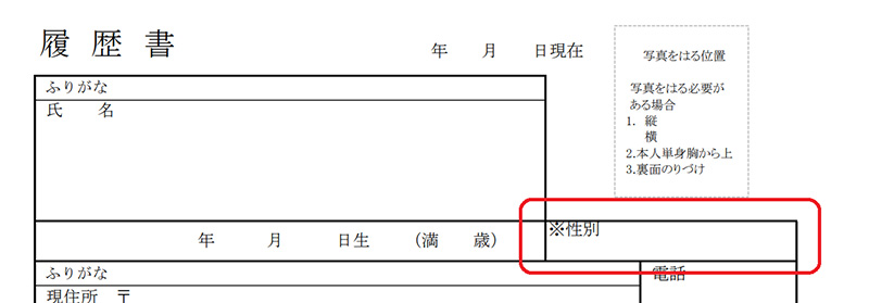 今回公開された様式例では、性別欄は空欄になっており、注意書きとして「記載は任意です。未記載とすることも可能です」と書かれ、性別欄は任意での記入となりました。なお、「通勤時間」「扶養家族数(配偶者を除く)」「配偶者」「配偶者の扶養義務」の各項目についても設けないことになっています。様式例に基づく履歴書の使用については、法的な拘束力はなく、利用するかどうかは各企業の判断に委ねられますが、今後、多くの企業で、性別欄のない履歴書が使われることが考えられます。