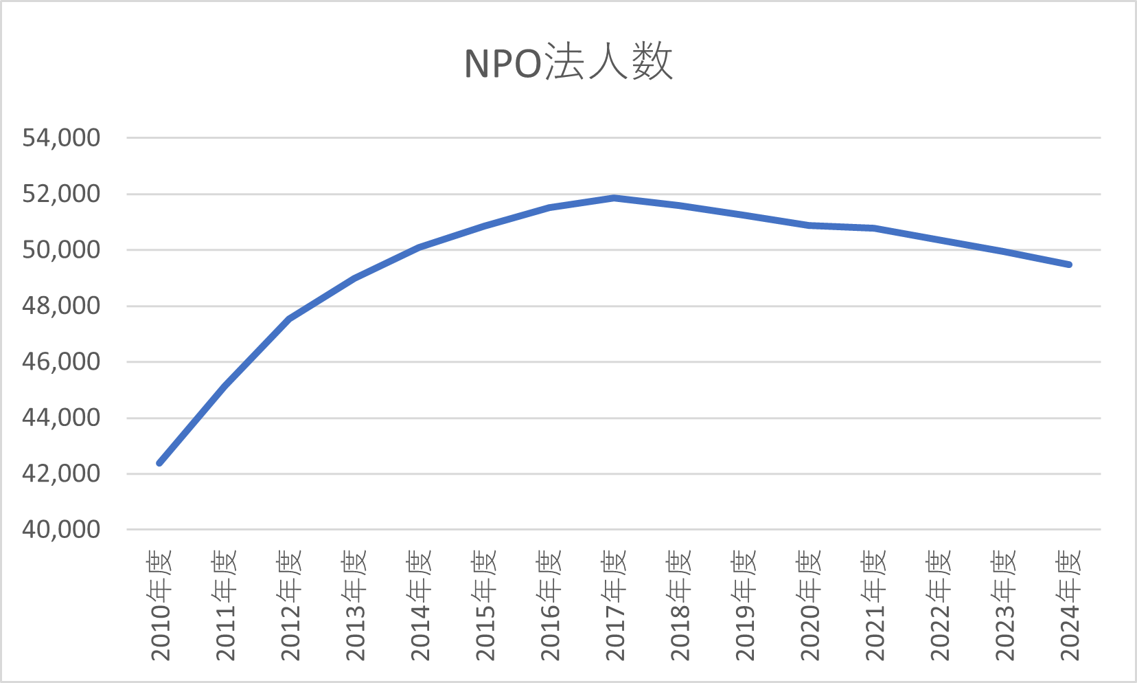 特定非営利活動促進法(以下「NPO法」)は1998年に制定され、その後NPO法人の数も増え続けていました。しかし、2017年度を境に減少に転じ、解散数が設立数を上回る状況が続いています。