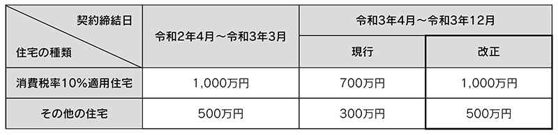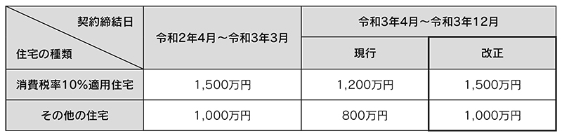 直系尊属から住宅取得等資金の贈与を受けた場合の非課税限度額について、令和3年4月1日から令和3年12月31日までの間に住宅用家屋の新築等に係る契約を締結した場合には、下記のとおり引き上げられます。