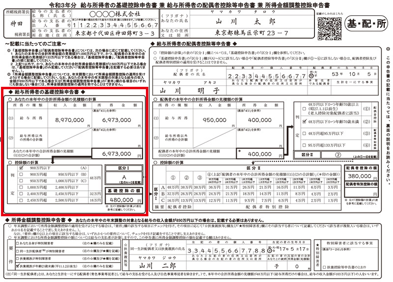 | 2. 給与所得者の基礎控除申告書 | 基礎控除 |