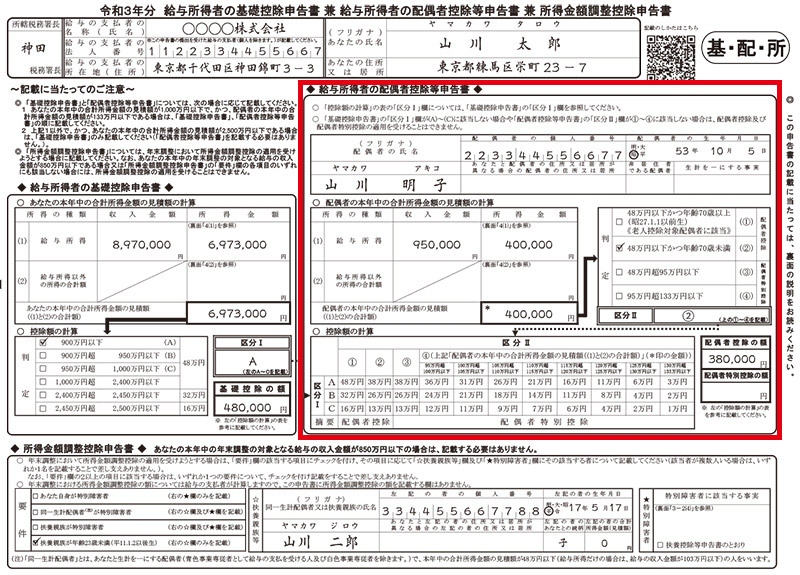 | 3. 給与所得者の配偶者控除等申告書 | 配偶者控除、配偶者特別控除 |