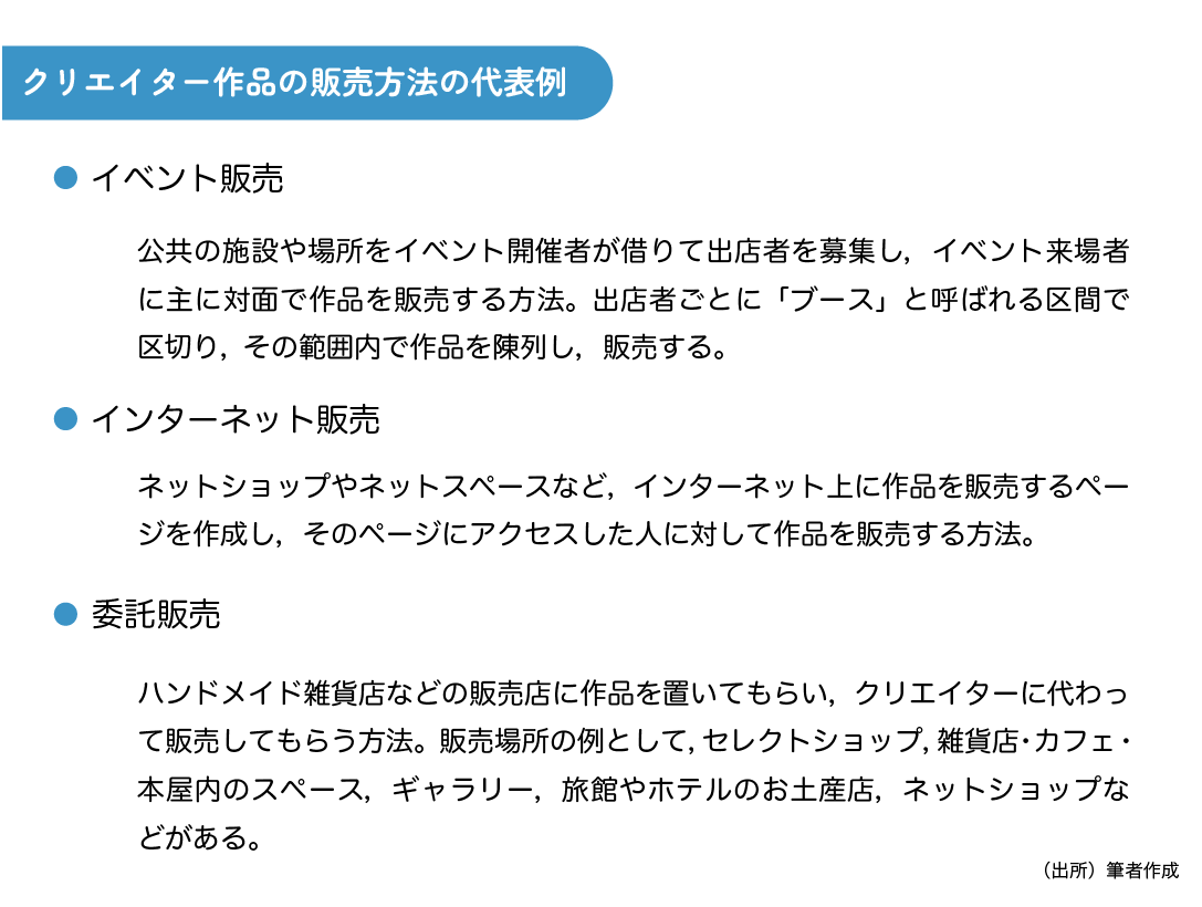 クリエイターが自分の作品を販売する「方法・場所」はさまざまです。