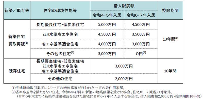 令和4年適用初年度分から「住宅ローン減税」(住宅借入金等特別控除)の制度について、税額控除率が従来の1%から0.7%に変更となりました。控除限度額を「年末ローン残高×0.7%」として計算しますので注意してください。控除対象額は、認定長期優良住宅、ゼロ・エネルギー・ハウス(ZEH)、省エネ基準適合、その他の4段階に分かれていますので、自身がどの対象なのか事前に確認をしておきましょう。