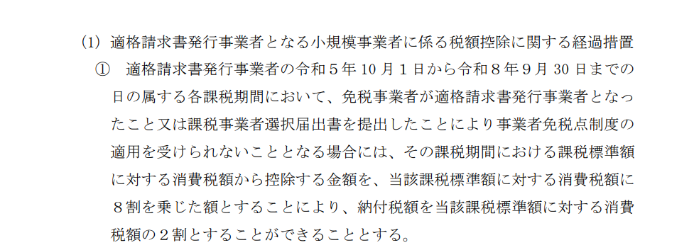 2割特例は期間限定です。「2023年10月1日から2026年9月30日までの日の属する課税期間」しか適用できないのです。個人事業主ならば「2023年10月1日から2026年12月31日まで」、3月決算法人なら「2023年10月1日から2027年3月31日まで」となります。