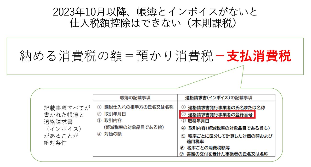 【A】インボイス制度は「消費税法が定める請求書や領収書の記載事項の新ルール」です。このルールを守った請求書や領収書等(インボイス)がないと、買った側は本則課税での仕入税額控除ができません。そしてインボイスは、消費税を納めている課税事業者しか発行できません。