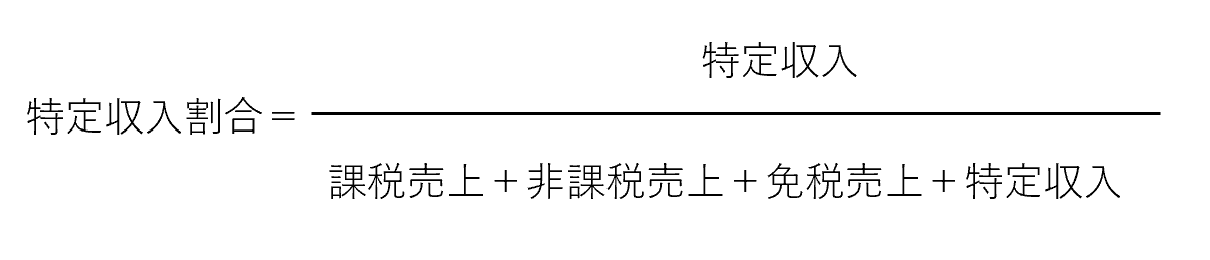 特定収入とは、補助金、助成金、会費、寄付金などの収入です。下記の計算式で求める特定収入割合が5%を超える場合には仕入税額控除に一定の制限が生じることとなります。株式会社などの民間企業にはこの規定は適用されないため、NPO法人は普通法人に比べて消費税の納税額が増加する可能性があります。このような規定が存在する理由は、公益法人等は補助金等を受けることも多く、収入に対して消費税が課されない上に仕入税額控除が全て認められれば民間企業に比べて税制上有利になってしまうためと説明されています。