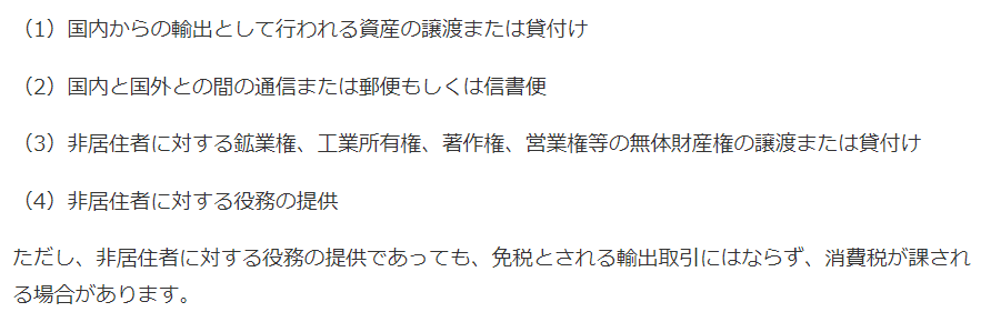 なお、国境を越えてインターネットなどを介して行われる電子書籍や音楽、広告などの配信は、輸出免税ではなく、別の判断をすることになります(今回は割愛)。