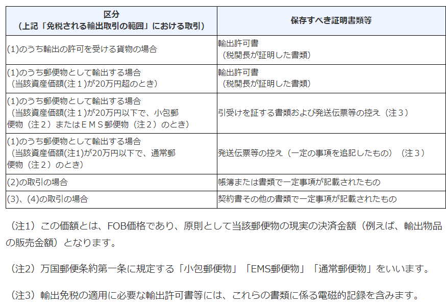 ただし、無条件で免税となるわけではありません。次の証明書等を7年間保存することが必要です。