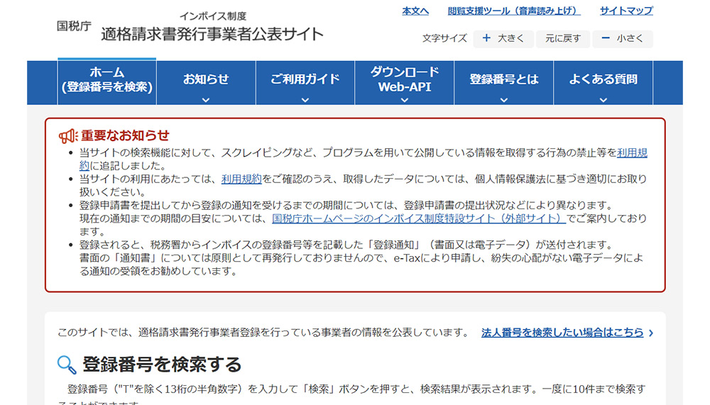 ただ、登録番号を付与されるのは登録が完了した後です。登録が完了すると、登録番号が事業主に通知されます。総務か経理に通知を確認するのがベストですが「インボイス制度適格請求書発行事業者公表サイト」でも自社の登録状況を調べられます。