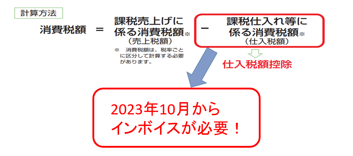 インボイス制度が始まると、原則課税方式により消費税計算を行っている場合、適格請求書(インボイス)がないと原則として仕入税額控除ができなくなります。