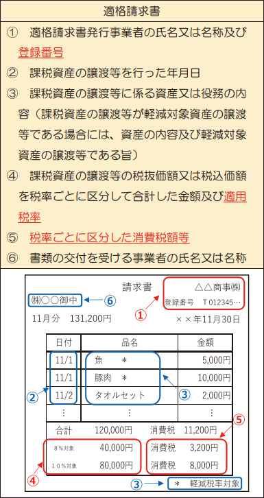 簡易なインボイスは例外です。小売業や飲食業、旅館業など不特定多数が相手の事業のみが発行できます。次の5つを書きます。