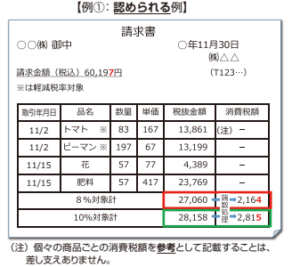 そのため、但書き欄が、「空欄」や「お品代」の記載では、原則としてインボイスとして認められません。但書きについては、標準税率対象、軽減税率対象、非課税等に区分できる程度の記載が必要とされています。