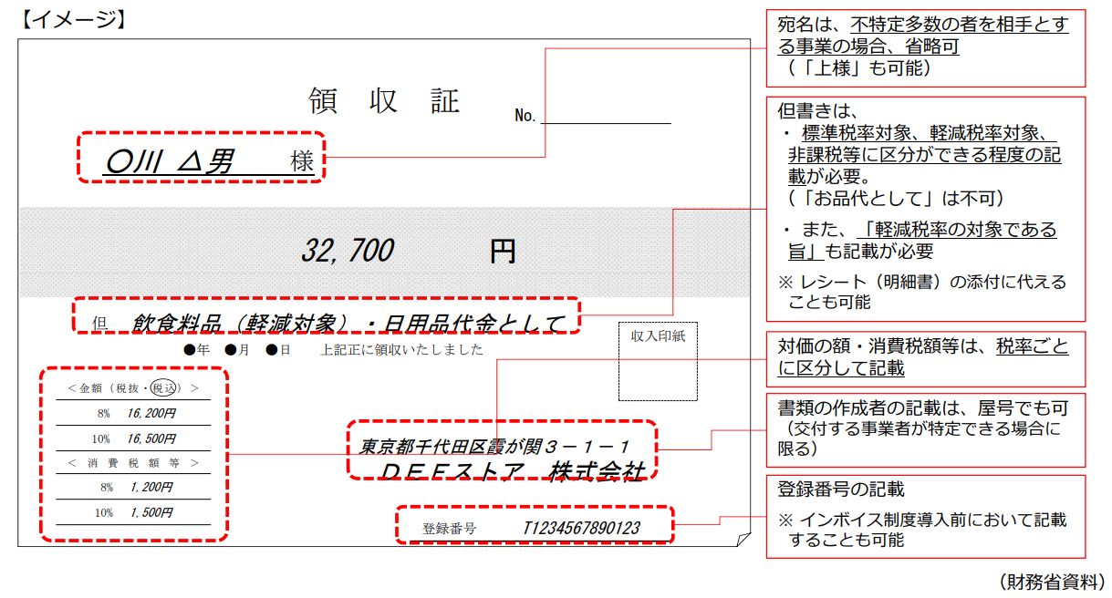 なお、不特定多数の方に販売等をする小売業や飲食店業等の場合は、宛先の記載を省略し、または「上様」と記載してもその他のインボイスの必要事項が記載されていれば簡易インボイスに該当するため、インボイスとしては問題ないことになります。