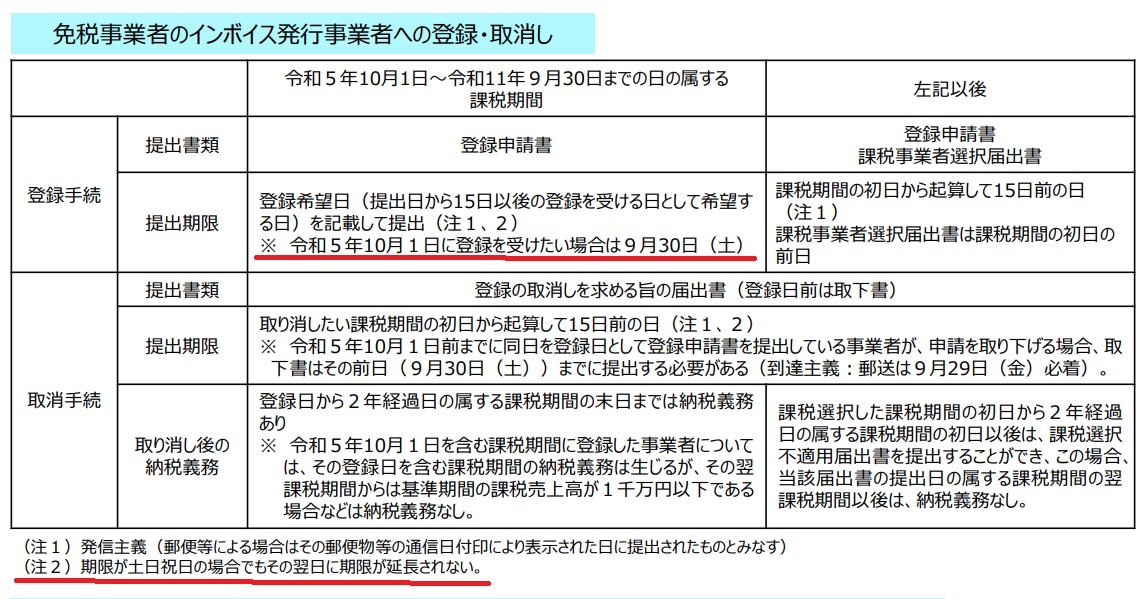 2023年10月1日にインボイス登録をするなら、紙申請・e-Tax申請ともに9月30日までに申請をしなくてはなりません。