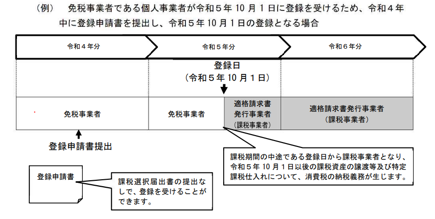 なお、上記の例は、2022(令和4)年中に登録申請書を提出した場合ですが、2023(令和5)年9月30日までにインボイスの登録申請書を提出した場合も、同様となります。