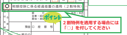 消費税申告書(第一表)の右下「税額控除に係る経過措置の適用(2割特例)」に「〇」をつけます。