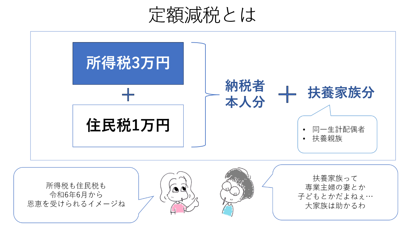 ま「1人あたり所得税3万円と住民税1万円が控除されるという制度よ」