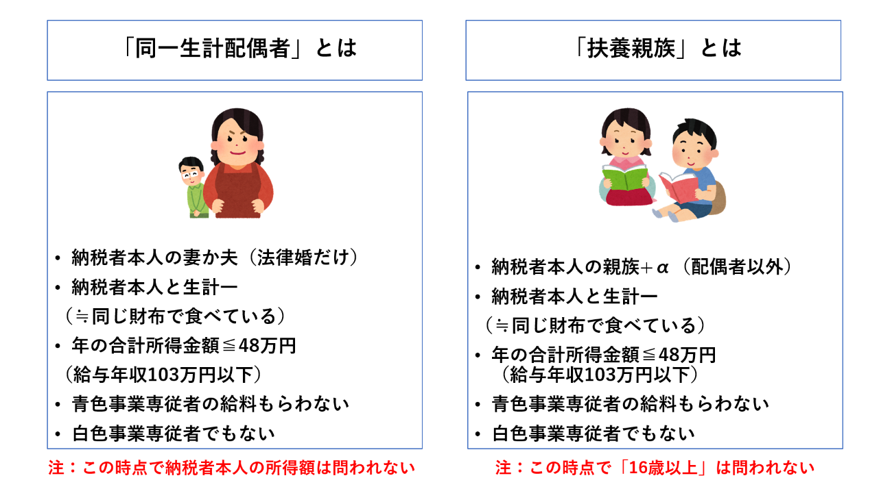 ま「同一生計配偶者と扶養親族のこと。具体的な条件はこうなってるよ」
