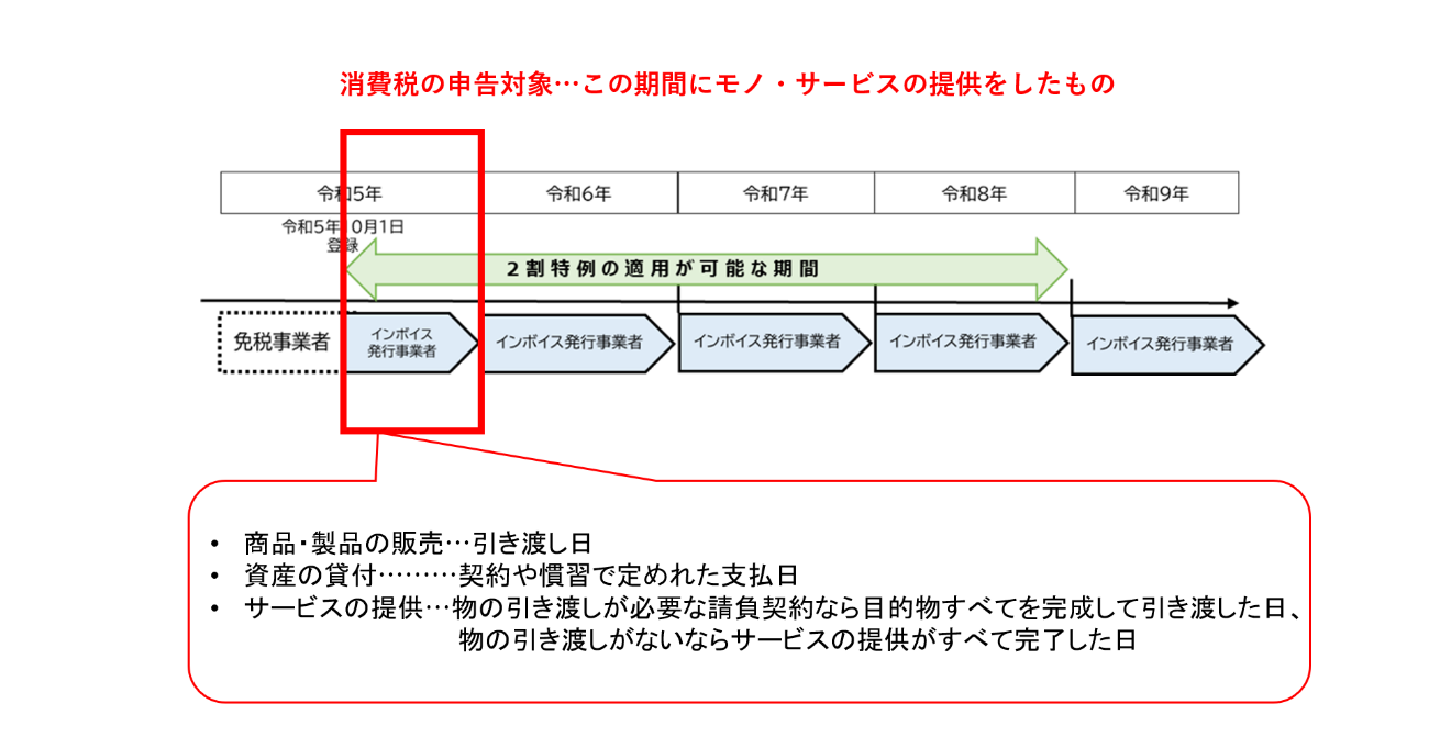2割特例で今回、消費税の確定申告をする人は「インボイス制度が始まる前までは免税事業者だったけれど、インボイス制度が始まったからやむなく登録して課税事業者になった事業者」です。