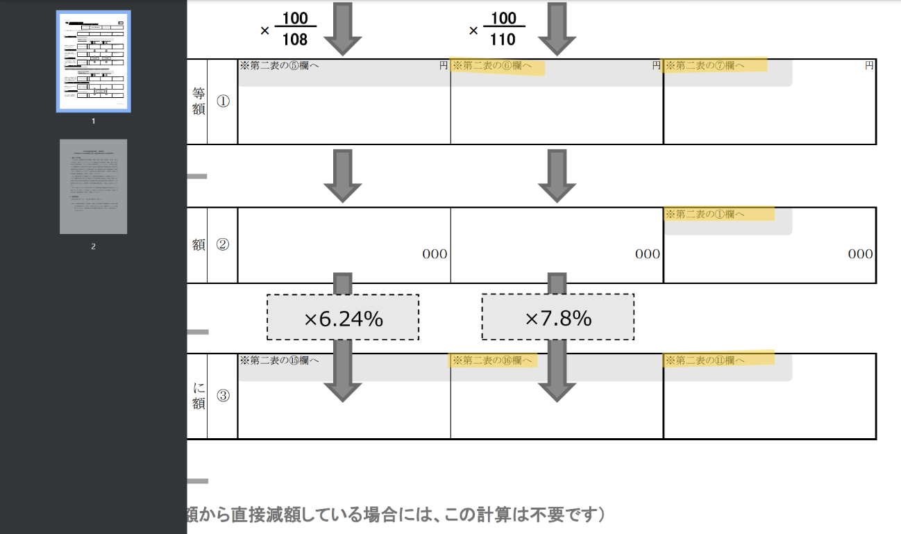 第二表は、売上税額つまり納める消費税額の明細です。基本的に、付表6から転記していきます。