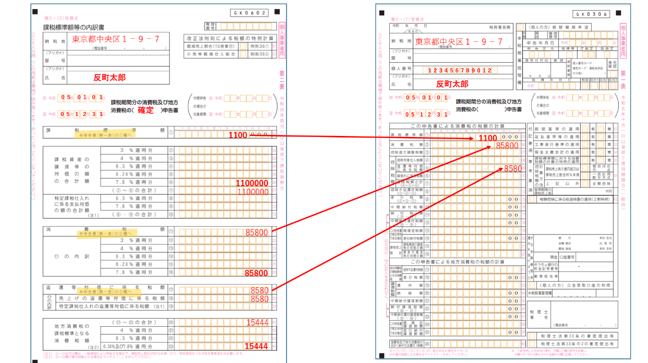 次に、消費税の申告書を「第二表→第一表」の順で作成します。ここでは一般課税用の申告書で見ていきます。