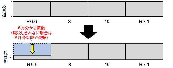 予定納税の対象となる方は、令和6年7月の第1期分予定納税額から本人分に係る特別控除の額に相当する金額が控除されます。