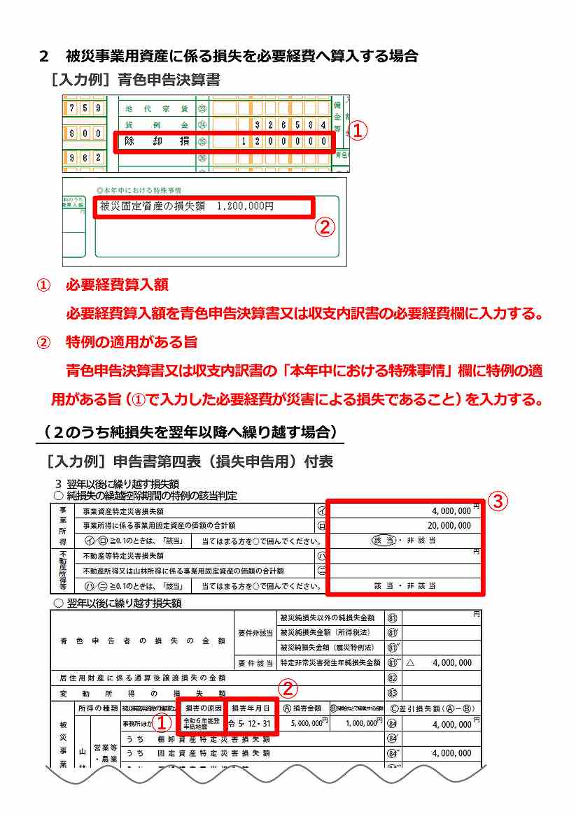 なお、発生した災害が特定非常災害として政令指定された場合、繰越控除の期間が5年間となります。特定非常災害の繰越控除は、厳密な条件がやや複雑なので、本稿では割愛します。