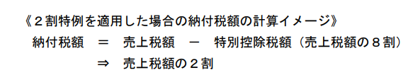 2割特例では、納税額は売上分の消費税の2割程度に収まります。実際の計算では、おおよそ次のようになります。